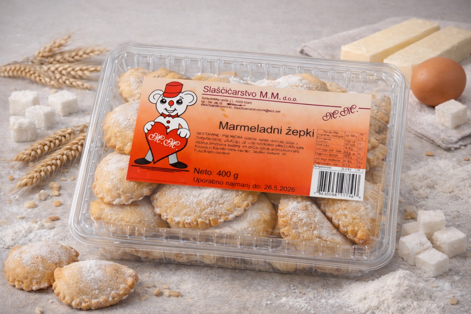 Krhki piškoti z nežnim testom, polnjeni s sladko sadno marmelado, ki v vsakem grižljaju pričara popolno ravnovesje med mehkobo in svežino. Klasična sladica za sladko razvajanje ob vsakem trenutku.